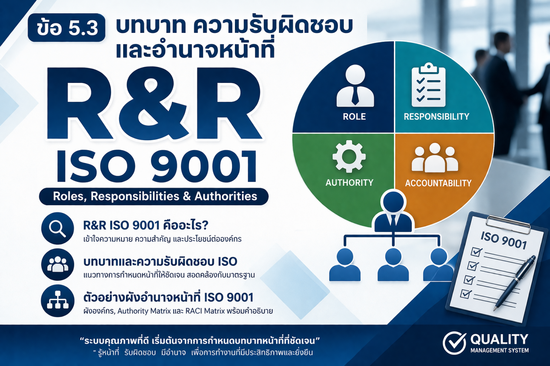 ตาม ISO 9001:2015 ข้อ 5.3 องค์กรต้องกำหนดให้ชัดเจนอย่างน้อยในเรื่องนี้:
